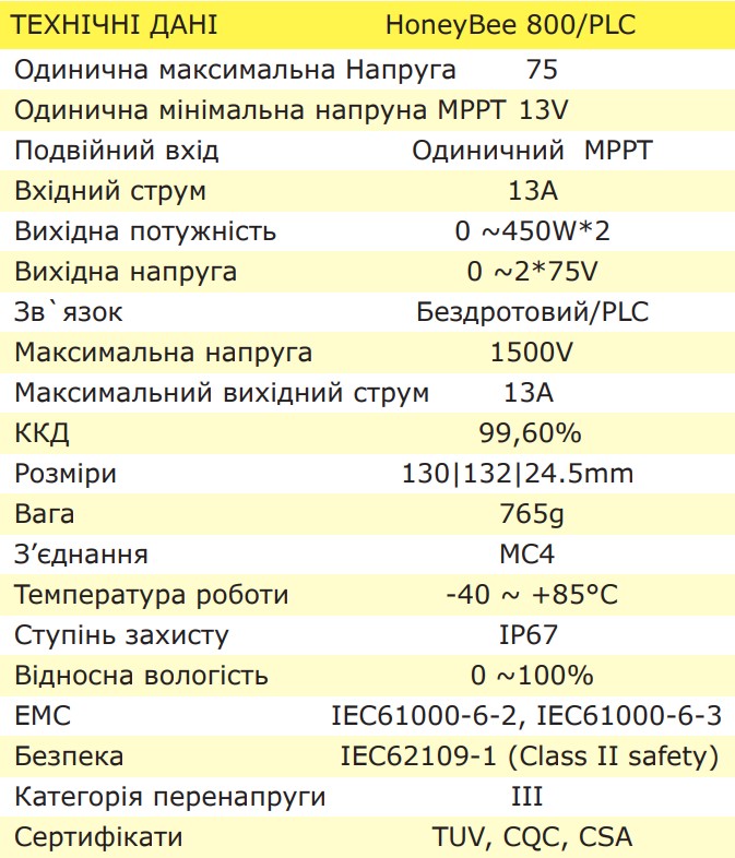 GNE Honeybee 800 оптимизатор мощности для фотоэлектрических систем (оптимизатор для двух ФЭМ суммарной мощностью не более 900Вт, и током 13А)