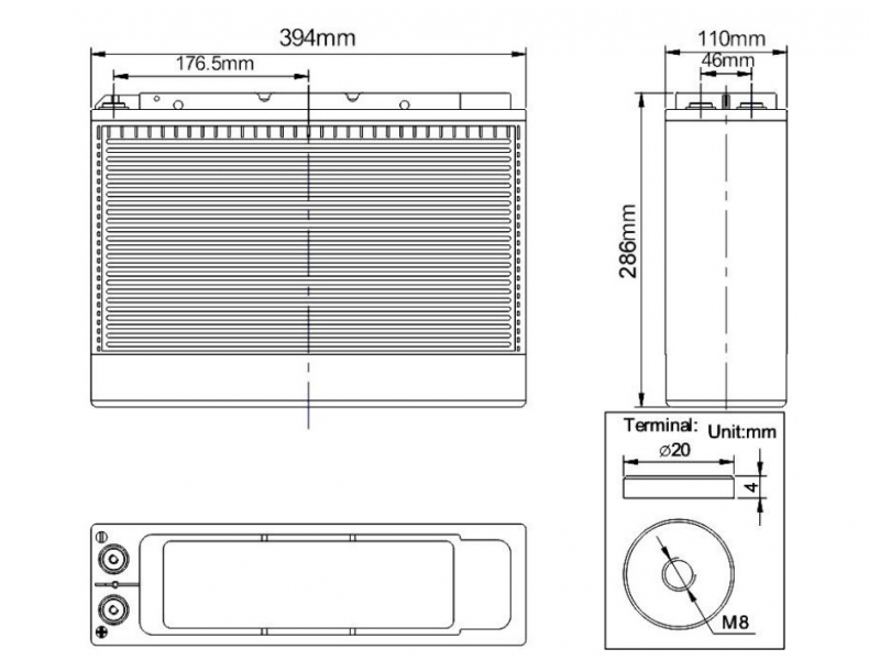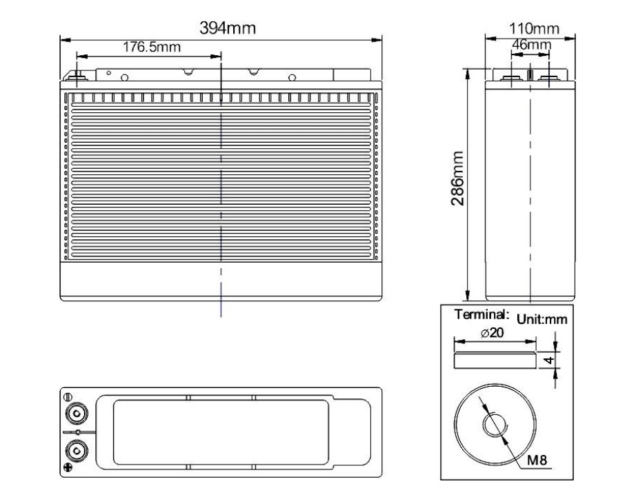 Такие батареи имеют более плотный корпус с фронтально расположенными клеммами. Дизайн и строение соединений позволяют легко устанавливать эти батареи практически в любом месте. Их можно устанавливать и в вертикальном и в горизонтальном положениях или соединять несколько батарей в отдельный аккумуляторный блок.