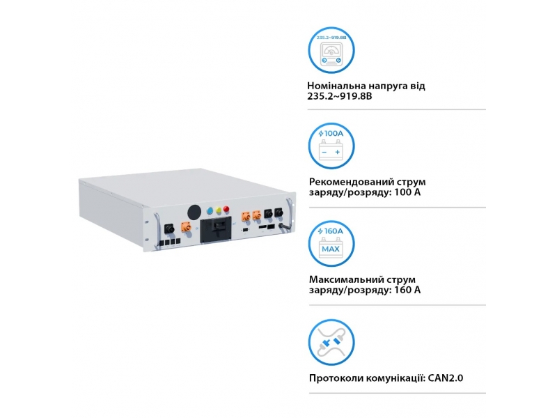 Система управления аккумуляторами BMS Deye BOS-A-PDU2 для Deye LiFePO4 BOS-A поддерживает управление высоковольтными аккумуляторными модулями LiFePO4, известными своей высокой энергоэффективностью, долгим сроком службы и экологичностью. Устройство позволяет подключать к 21 модулю в серии, обеспечивая масштабируемость системы от 53.76 до 161.28 кВт·ч. Это делает его идеальным выбором для масштабных энергетических проектов, нуждающихся в гибкости и производительности.