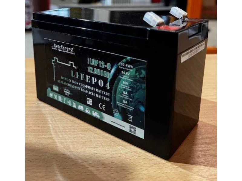 EverExceed LDP 12-8 - это литий-железо-фосфатная (LifePO4) аккумуляторная батарея на 12В 8 Ач (102 Вт*ч) со встроенной системой управления батареей (BMS - Batery Managmenet System), которая обеспечивает равномерную зарядку-разряду АК защиту от перегрева. В батарее употребляются новейшие ячейки класса А от компании EVE.