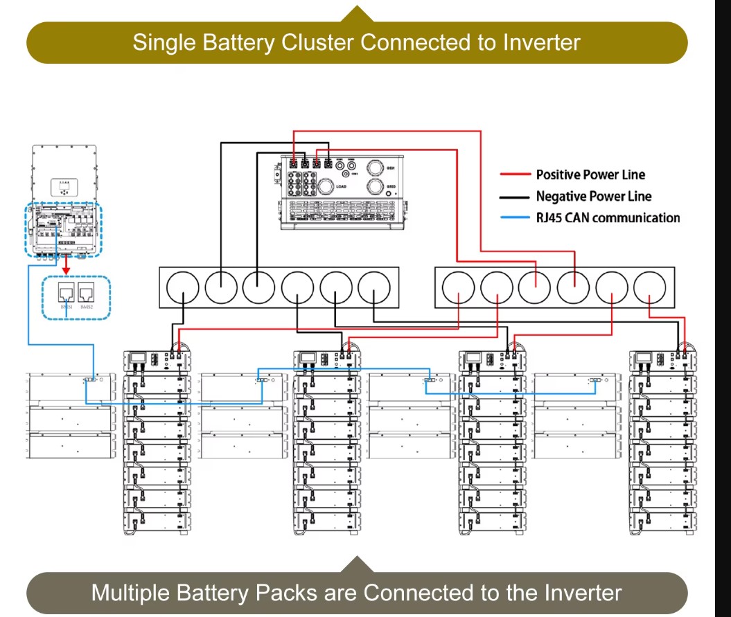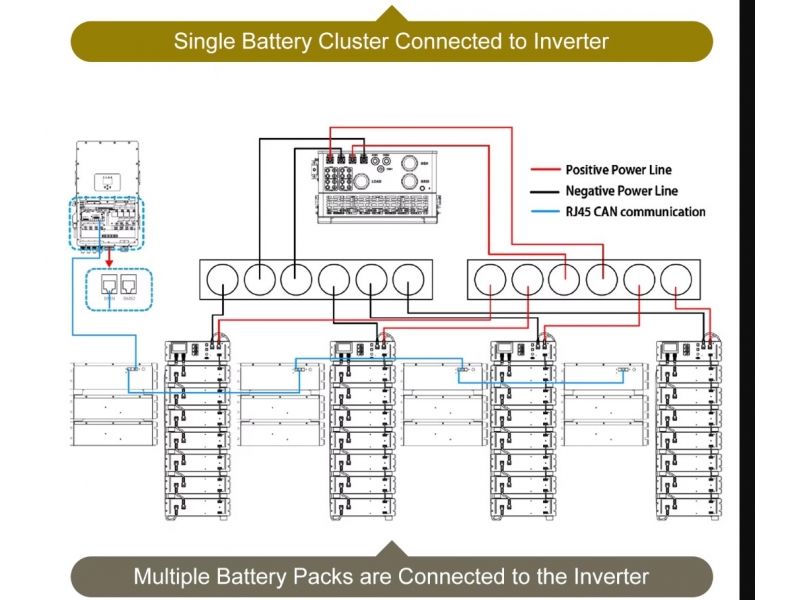 - Гибкая конфигурация: до 4 батарей последовательно (макс. 51,2 В) и 10 параллельно для различных потребностей.