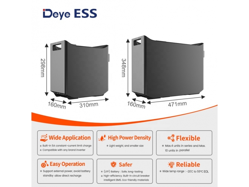 Превратите свой дом в автономную электростанцию с помощью солнечной энергии и литиевой батареи Deye WD-G12100 LiFePO4. Эта передовая система хранения энергии на основе литиевых аккумуляторов обеспечивает непревзойденную надежность и производительность для энергетической независимости жилья.