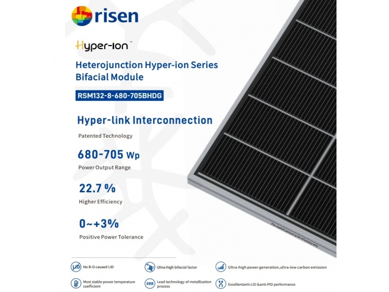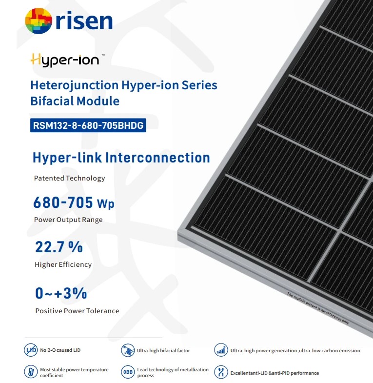 Бифациальный модуль Risen Hyper-ion Pro RSM132-8-725BHDG 725Вт Технология гетероперехода (HJT) для максимальной фотоэлектрической производительности