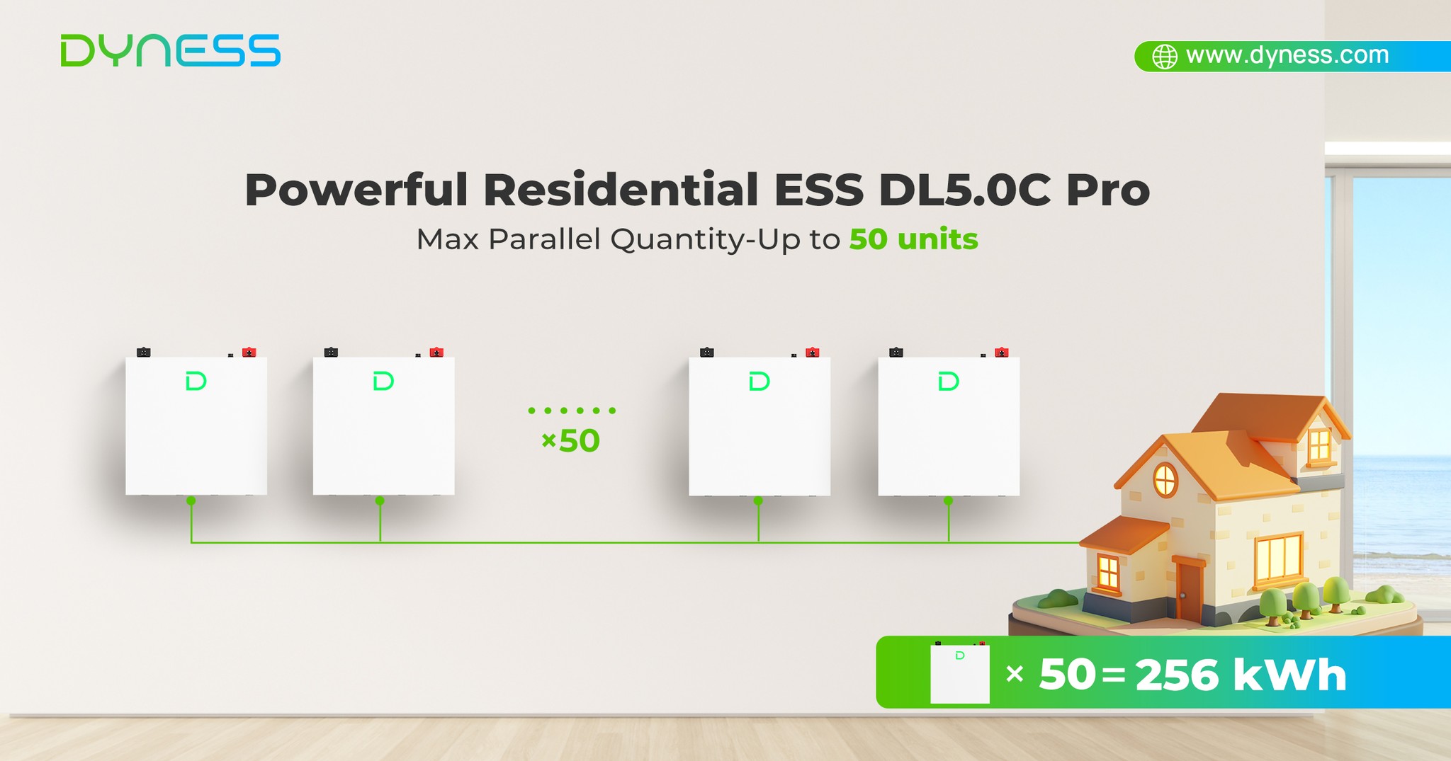 - Dyness DL5.0C Pro легко масштабируется, позволяя пользователям расширять объем хранилища с 5,12 кВтч до 256 кВтч путем параллельного подключения нескольких устройств.