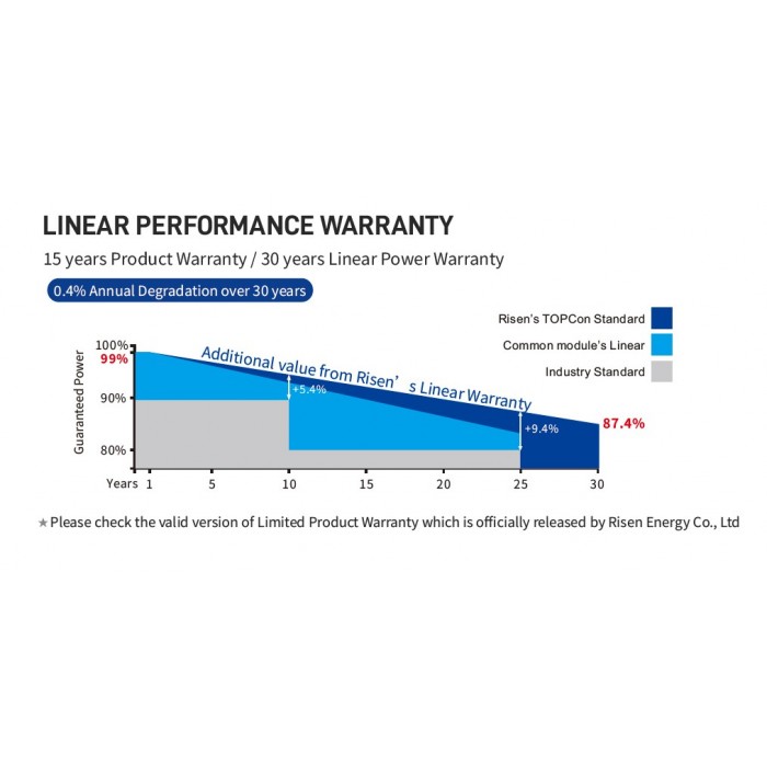 Гарантія: 15 років на продукт і 30 років на потужність (деградація ≤0.4%/рік)