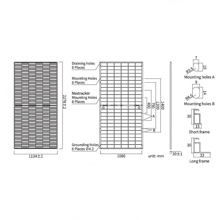 Двухсторонняя генерация: Благодаря бифасиальной технологии панель способна генерировать дополнительную энергию с тыльной стороны, что повышает общую производительность системы.