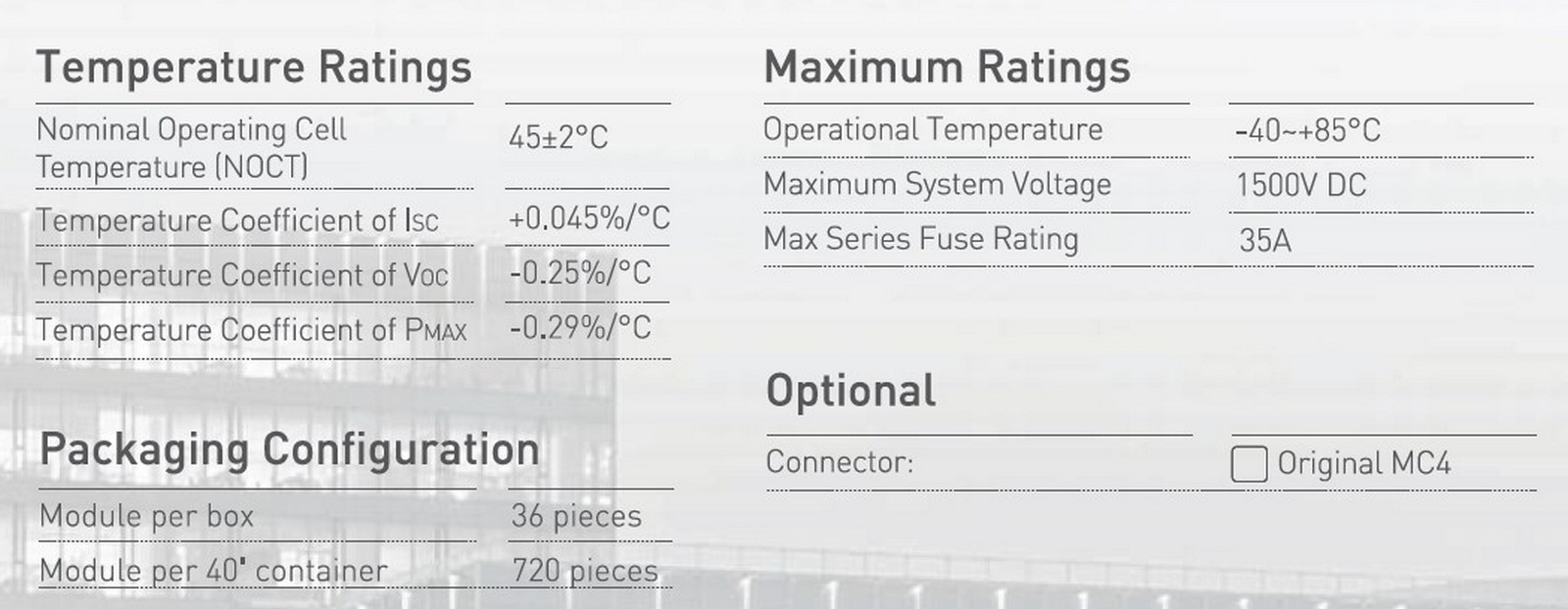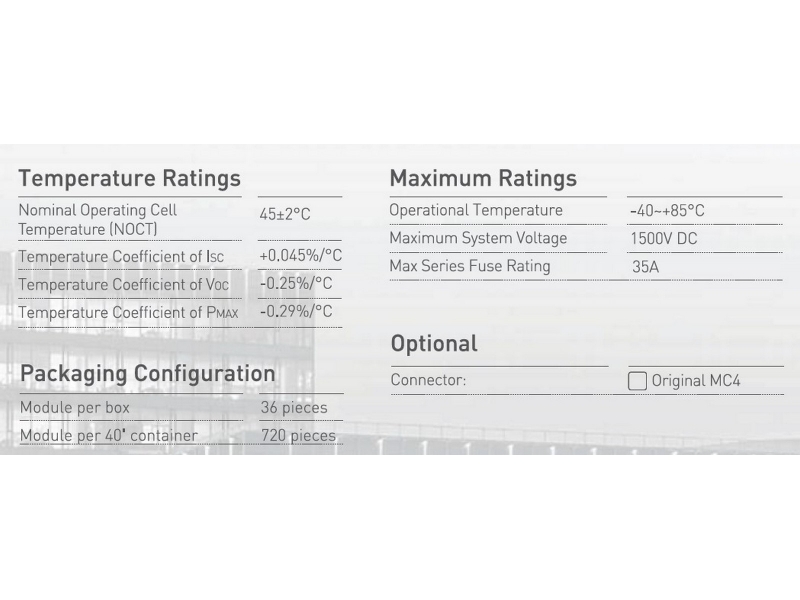 Особая структура фотоэлементов обеспечивает уверенную работу панели даже при слабом освещении и в пасмурную погоду. Оптимальный температурный коэффициент позволяет уменьшить потери мощности при работе при высоких температурах, что актуально для регионов с жарким климатом. Благодаря этому панель поддерживает стабильный выходной сигнал вне зависимости от сезонных изменений и погодных факторов.