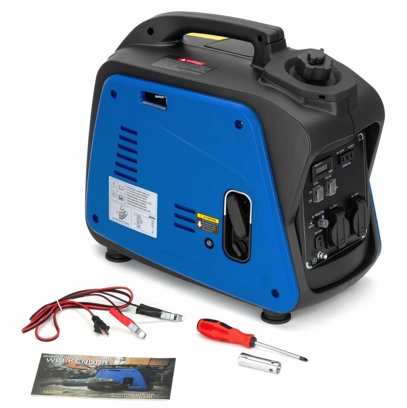 Weekender X2000i работает на бензиновом топливе и представляет собой сверх экономную современную автономную электростанцию для использования в частном порядке, домашнем быту, на небольших производствах. Вырабатывая ток высокой чистоты, что обеспечивается за счет пошагового преобразования в блоке инвертора, и, обладая большой помехоустойчивостью, данный прибор отлично подходит для подключения к нему любых, даже сверхчувствительных, девайсов вроде ноутбуков или медицинского оборудования. Надежность инверторного генератора Weekender X2000I обуславливается применением инновационных систем защиты: принудительного воздушного охлаждения мотора, индикаторных датчиков, использование модернизированного шумопоглощающего кожуха и глушителей. Дополнительная функция экономного режима работы привода в случае высоких нагрузок способствует значительному увеличению моторесурса.