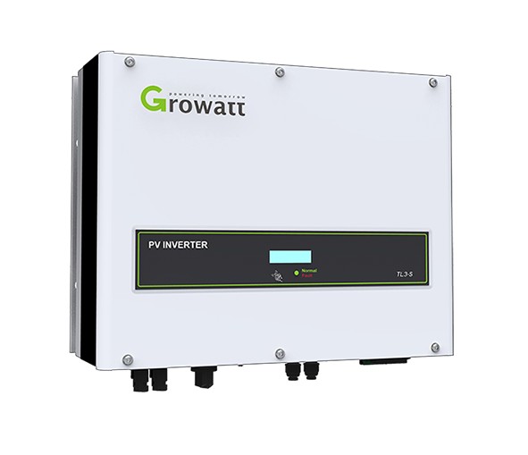 Сетевой трехфазный инвертор Growatt 7000 TL3-S с двумя трекерами MPPT, рассчитан на подключение фотомодулей мощностью до 8,4 кВт. Есть защита от обратной полярности, перегрузки и перенапряжения переменного тока, встроенный выключатель постоянного тока. Прибор отслеживает заземление и наличие сети. Конструкционно устройство представляет собой металлический односекционный бокс с жидкокристаллическим дисплеем на лицевой стенке. Высота модели - 44,8 см, ширина - 48 см, глубина - 20 см. Вес - 21,6 кг. Снизу находятся порты RS232 и RS485 для осуществления дополнительного мониторинга. Возможно (опционно) подключение через RF/Ethernet/Wi-Fi. Благодаря компактному дизайну и малому весу солнечный инвертор легко устанавливается. Может навешиваться как внутри, так и вне помещения. Охлаждается естественным способом.