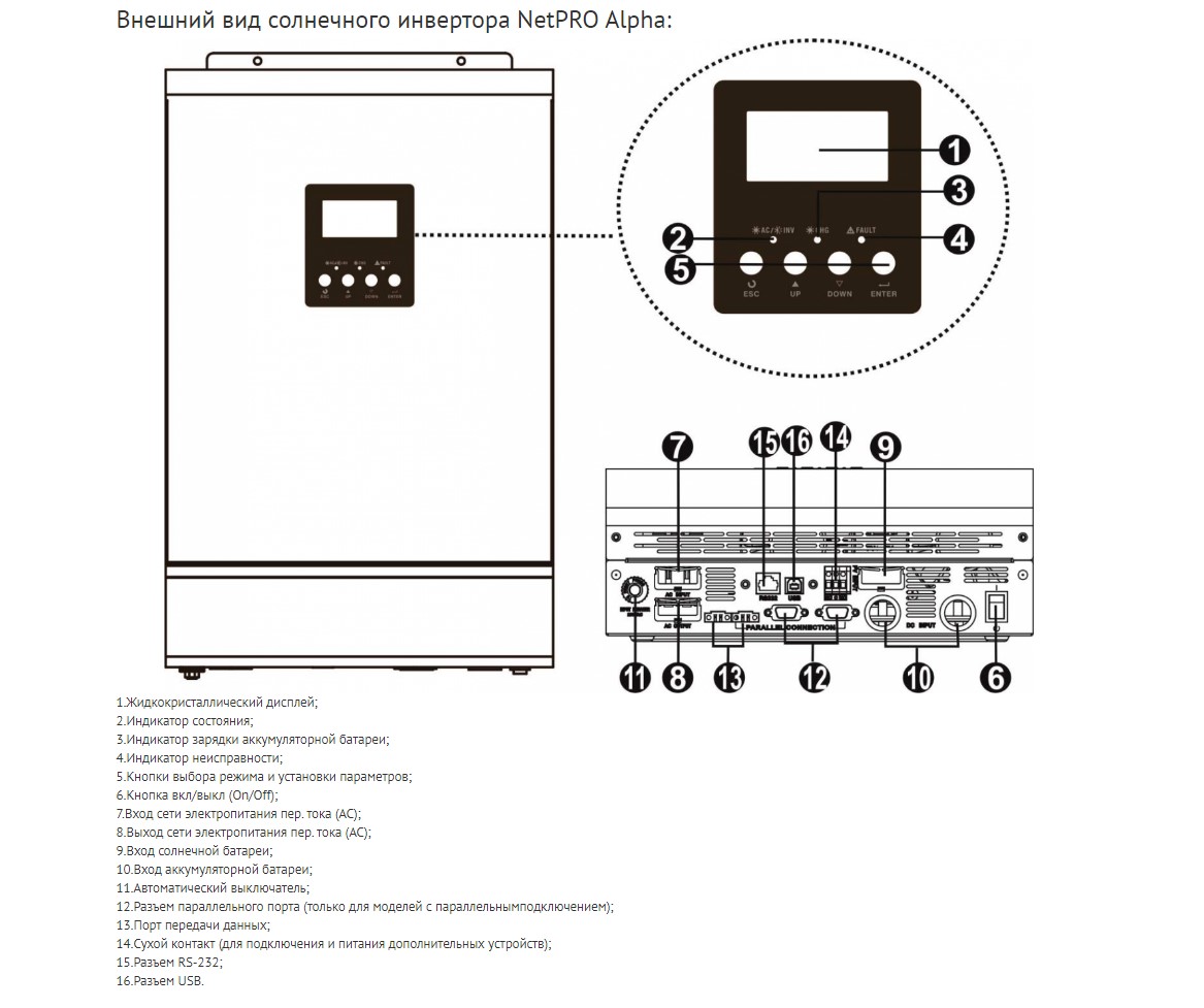 Гибридный солнечный инвертор NetPRO Alpha 5000 умеет смешивать энергию с разных источников. Гибкие программы настроек - приоритетов источников, таймеры зарядного, режимов работы (автономный, сетевой, гибридный). Устройство может одновременно питать нагрузку и заряжать аккумуляторы, если достаточно вырабатываемой мощности от фотоэлектрических модулей. Гибкие программы настроек - приоритетов источников, таймеры зарядного, режимов работы (автономный, сетевой, гибридный).