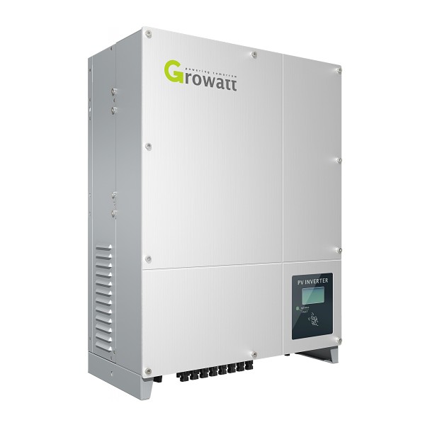 Growatt 18000UE - трехфазный сетевой инвертор мощностью 18 кВт. Сетевой трехфазный инвертор Growatt с двумя трекерами MPPT, мощность 18кВт, максимальное входное напряжение постоянного тока - 1000В. Сетевой инвертор это устройство преобразующее постоянное напряжение от возобновляемых источников энергии (солнечных батарей) в переменное напряжение, и передающее его напрямую в сеть 220/380В. Благодаря этому снижается потребление электроэнергии из внешней сети и можно осуществлять продажу электроенергии по "зеленому" тарифу.