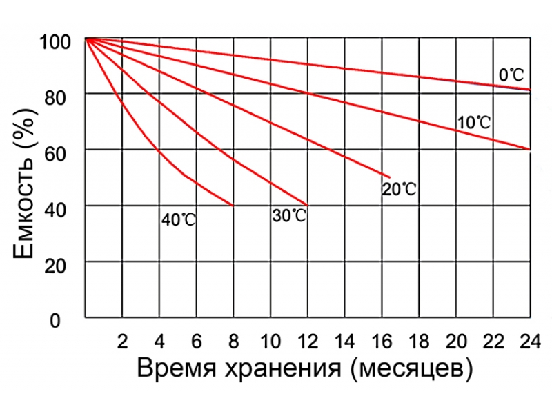 Зберігати краще в сухому та прохолодному місці. Оптимальна температура зберігання 25°С та нижче. Перезаряджайте акумулятор раз на півроку (при температурі 25°С±5°С). При підвищених температурах (понад 30 ° С) заряд необхідно проводити частіше - раз на 3 місяці.