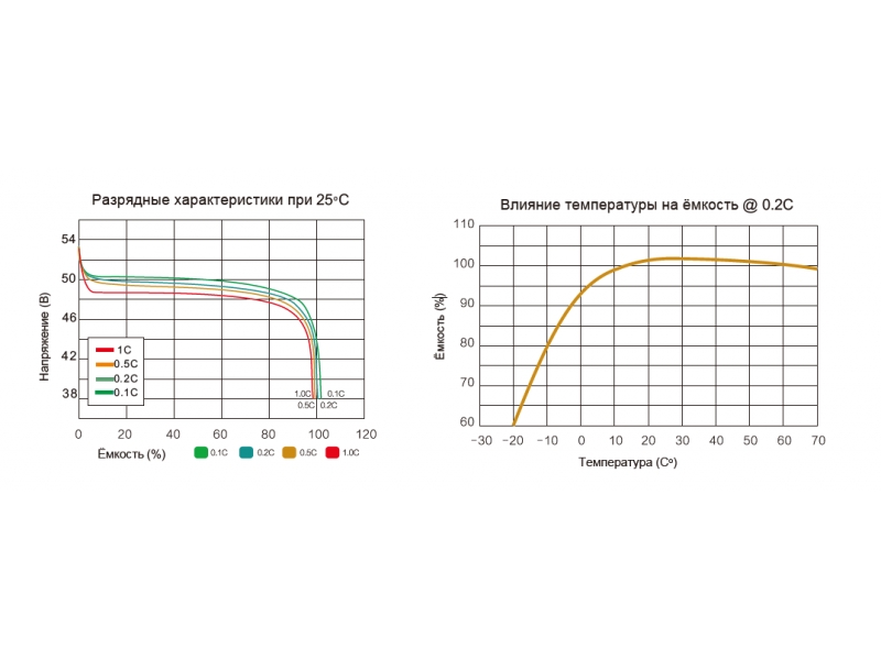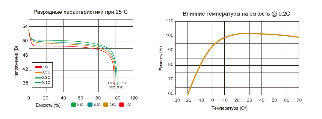 | Напруга заряду, рекомендована (В) | від 54.5 до 55.5 |