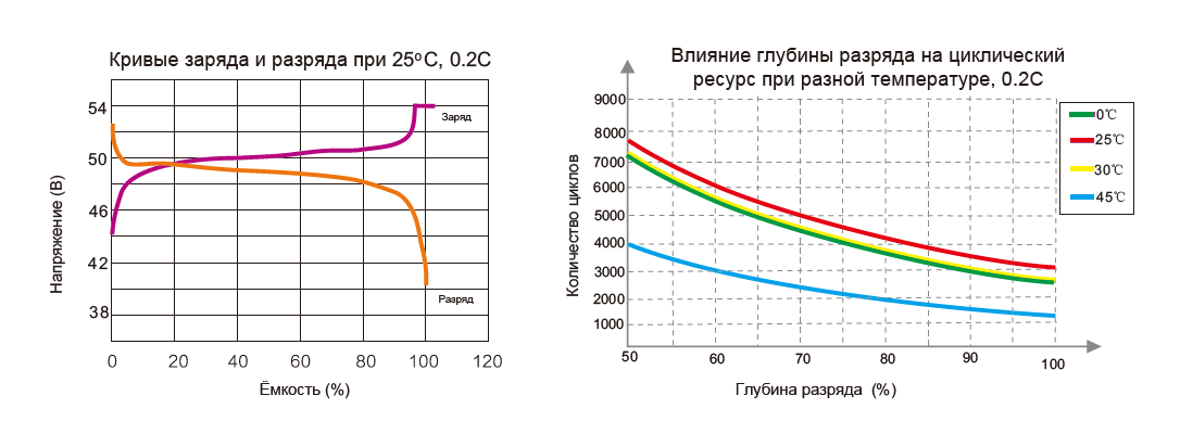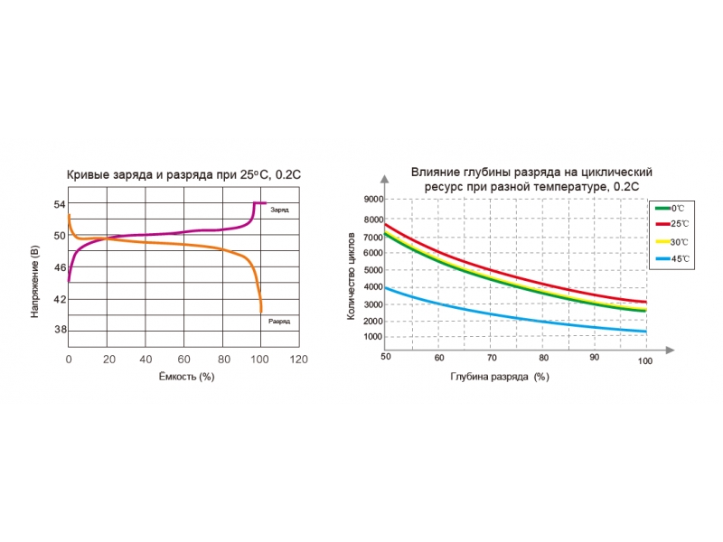 | Циклічний ресурс | 3000 циклів за 100% DOD, 25; 4200 циклів при 80% DOD, 25 |