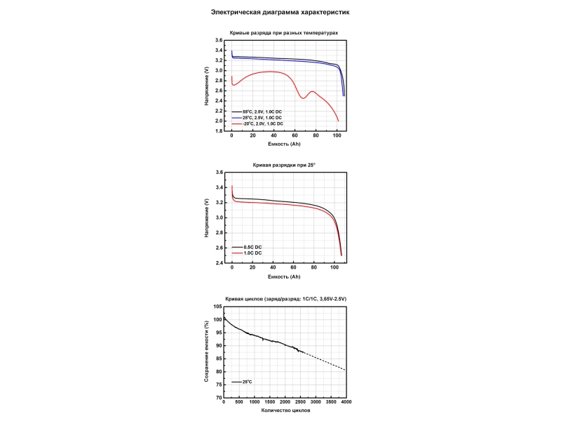 | Діапазон робочої напруги, В | 2,5-3,65 |