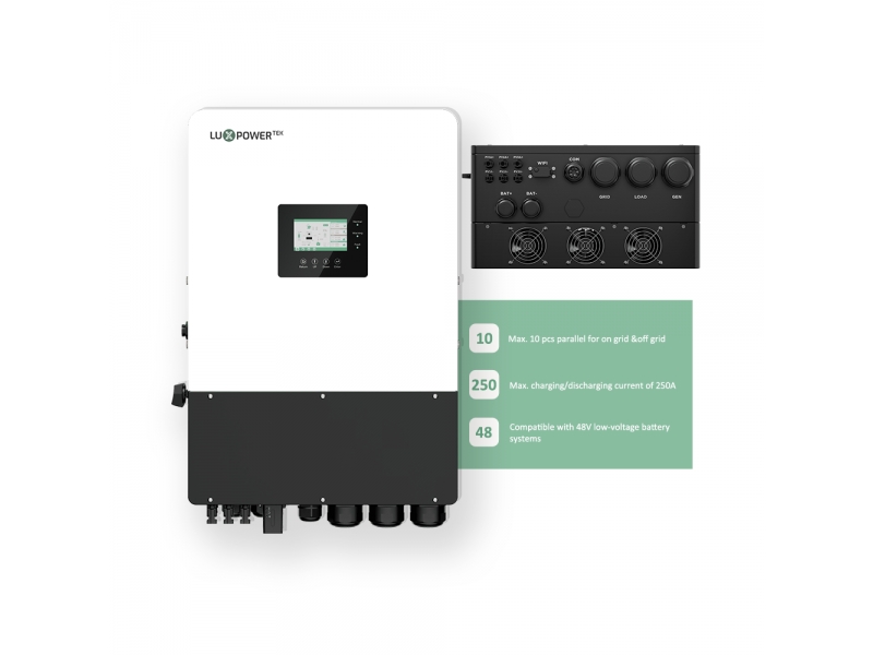 Модель низьковольтного гібридного інвертора Luxpower потужністю 15 кВт на 3 фази : TriP2-LB-3P 15K – це оновлена версія серії TriP, спеціалізована для 3-фазних гібридних сонячних енергетичних систем цивільного призначення. Пристрій має видатні вдосконалення, які дозволяють використовувати більше сонячної енергії, підтримує багато низьковольтних ліній літієвих акумуляторів та підтримує незбалансоване 3-фазне навантаження.