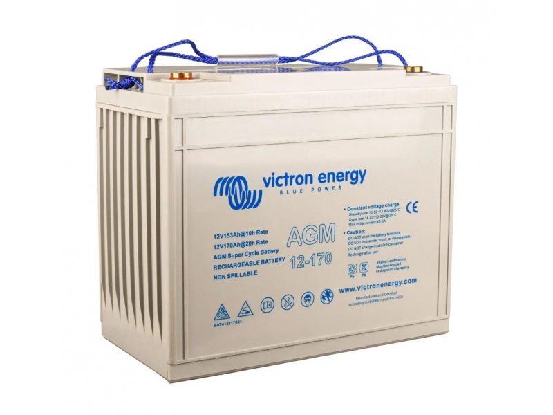 Місткість АКБ Victron Energy складає 170 А/год. Напруга – 12 В. Застосовується даний акумулятор в якості накопичувача заряду в СЕС чи в безперебійних джерелах електроживлення. Оскільки такий АКБ має чудові робочі характеристики при високих струмах (AGM технологія), то рекомендується для запуску двигунів (застосування в умовах високих струмів).