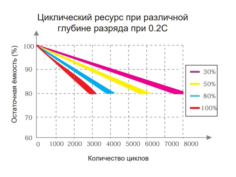 Более 4000 циклов при 80% DOD (глубина разряда).