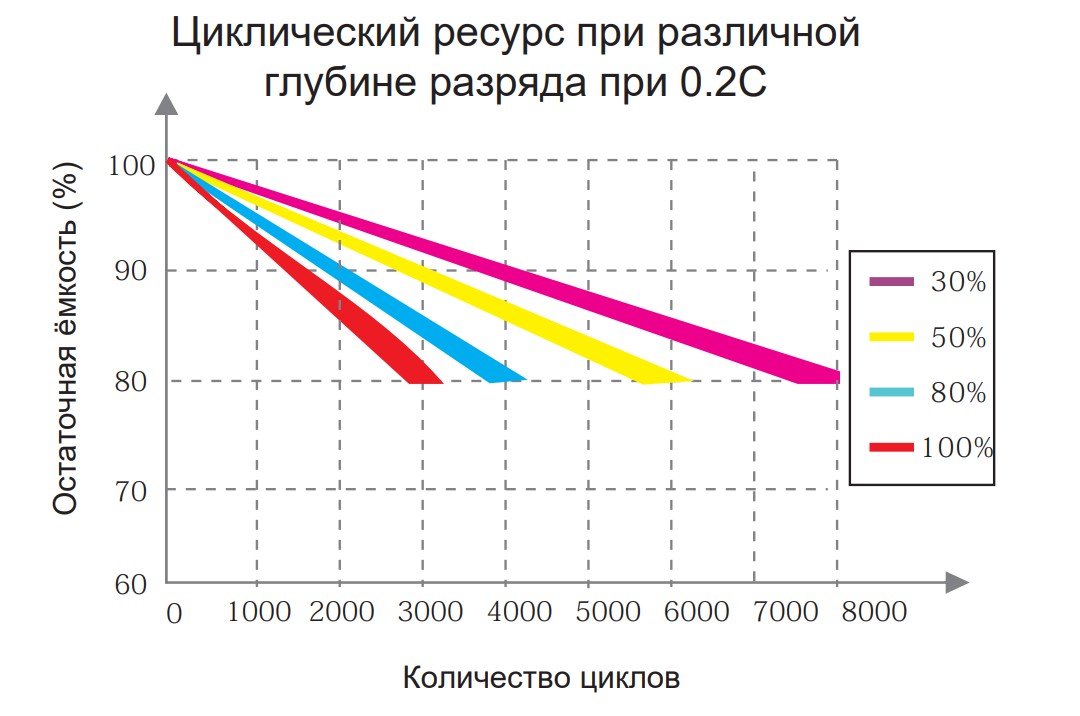 Более 4000 циклов при 80% DOD (глубина разряда).