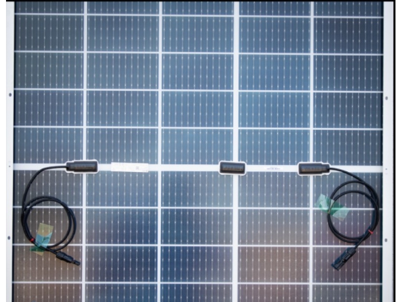Данный модуль является двусторонним , поэтому его генерация будет увеличена на 10-15%. Двухсторонние панели рекомендуется монтировать на наземных конструкциях. Для лучшей эффективности, под конструкцией должна быть подкладка с высоким альбедо (для лучшего эффекта отражения солнечных лучей).