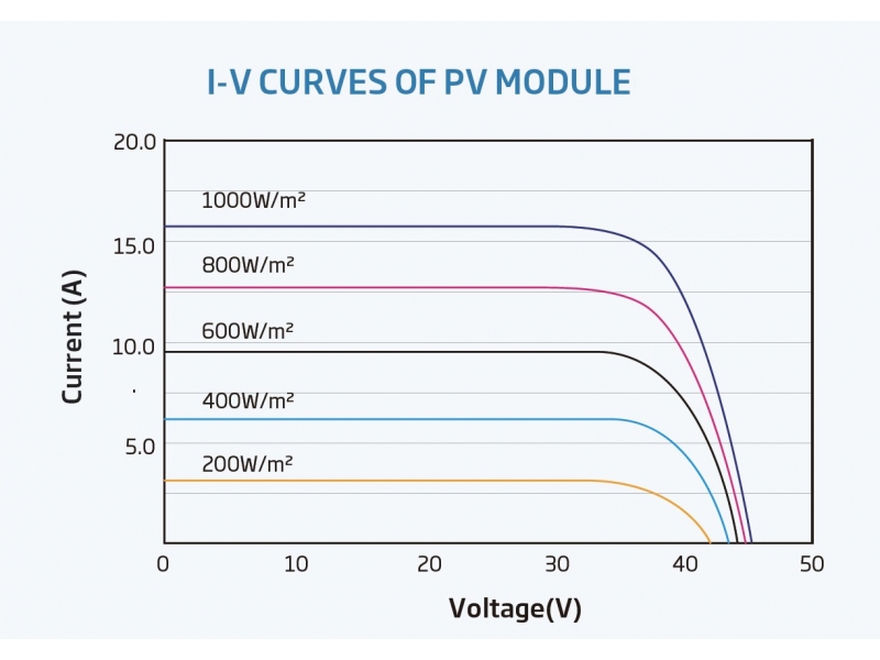 • Температурный коэффициент мощности достаточно низкий. Он составляет -0,34%/c. Поэтому такой модуль особенно эффективно работает летом, выдавая свои максимальные рабочие показатели и не утрачивая при этом мощности.