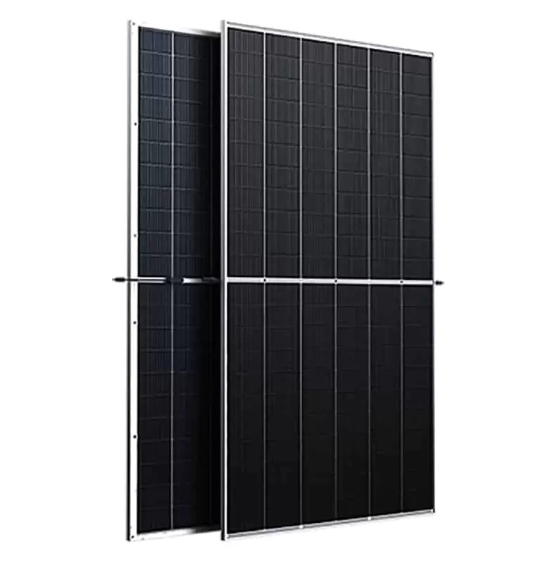 вариант двухсторонних фотоэлектрических панелей TrinaSolar Vertex TSM-DEG21C.20 MBB/660 Вт с двойным стеклом. Эти солнечные батареи обладают такими же характеристиками и техническими характеристиками, как и обычная стеклянная версия, но имеют более устойчивое и долговечное солнечное стекло.