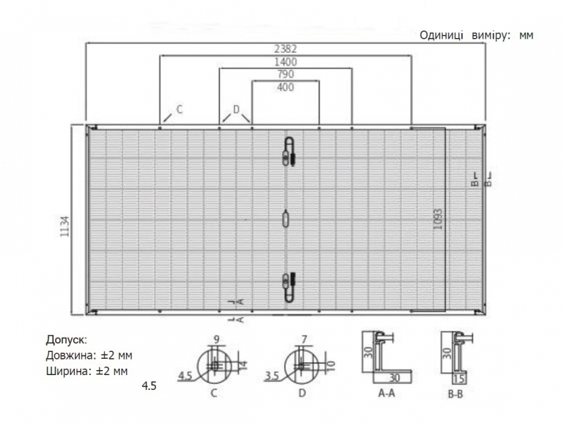 | Габаритные размеры, мм | 2382x1134x30 |