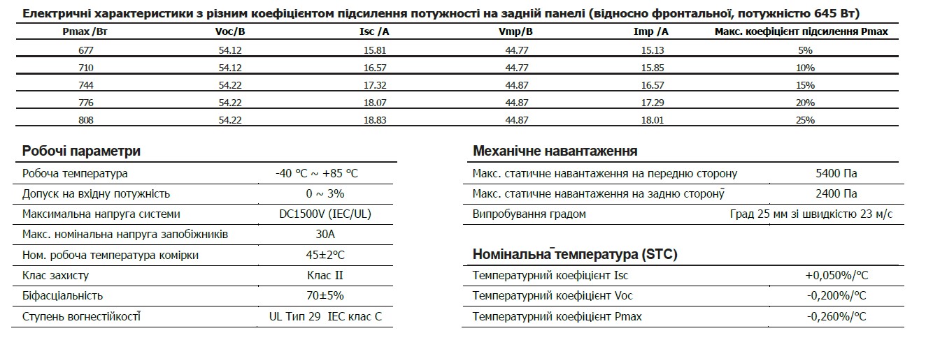 · Двухсторонняя технология (Bifacial) : Обеспечивает дополнительную генерацию энергии за счет отраженного света, что повышает общую производительность системы.