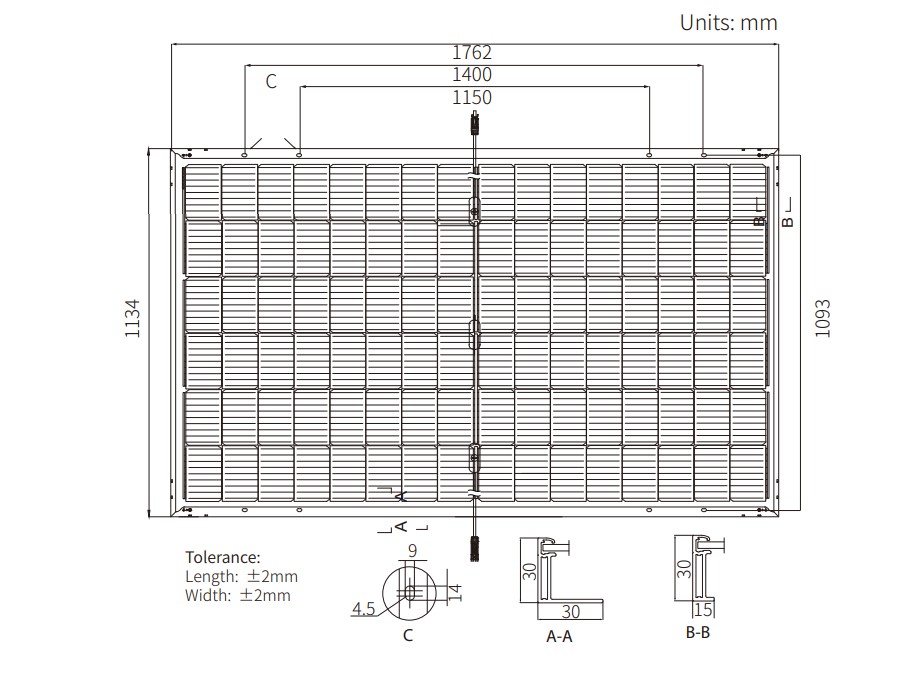 Модуль состоит из 96 монокристаллических фотоэлементов HPDC (High Performance Dual Cell), зафиксированных в герметичной рамке из алюминиевого сплава и сверху защищенных прочным закаленным стеклом. Класс защиты изделия IP68 гарантирует полную защиту от пыли и способность выдерживать кратковременное погружение в воду. Длина кабеля 1.4 м и тип коннекторов для подключения к модулю MC4.