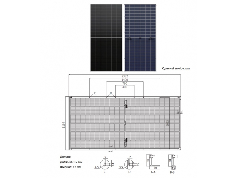 · Высокая устойчивость к механическим нагрузкам: Панель выдерживает ветер до 2400 Па и снеговая нагрузка до 5400 Па, что гарантирует ее надежность в различных климатических условиях.