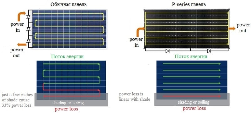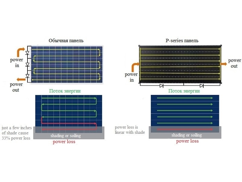 • Больше энергии: Благодаря более высокой производительности при затенении ряда строк панели Performance Series обеспечивают больше энергии, чем обычные панели.