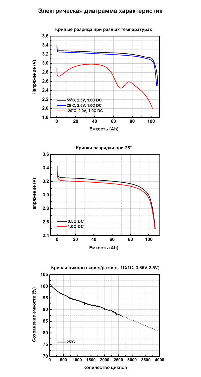 | Діапазон робочої напруги, В | 2,5-3,65 |