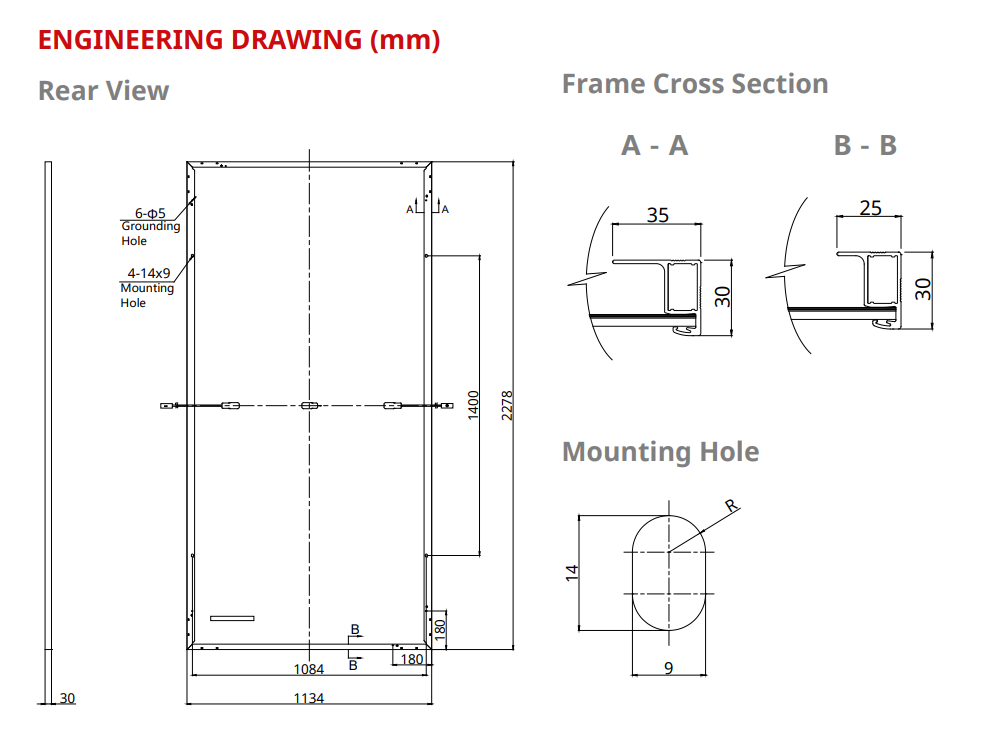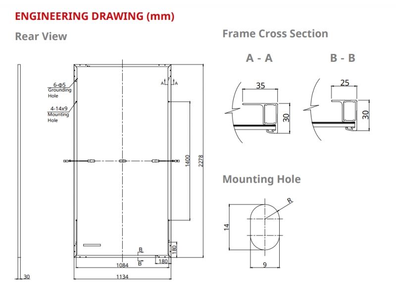 Завдяки комплексній технології пом’якшення LID і LeTID і ефективності модуля до 21,5%, ця фотоелектрична панель забезпечує надійне та ефективне виробництво електроенергії протягом усього терміну служби модуля. Крім того, завдяки стійкості до вітрового навантаження до 2400 Па та стійкості до сильного снігового навантаження до 5400 Па, він розроблений, щоб витримувати суворі умови навколишнього середовища, що робить його придатним для комерційних установок навіть у різних кліматичних умовах.