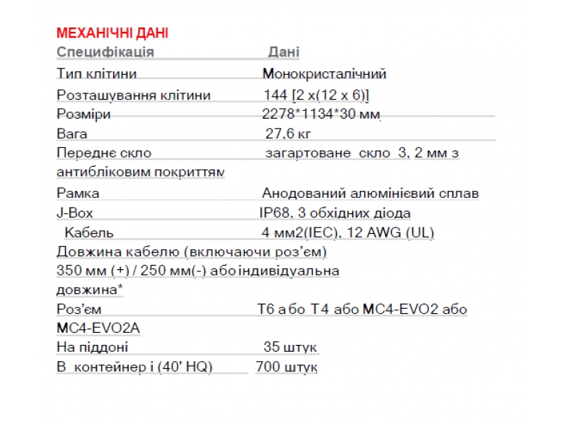 | Тип панелі | Монокристал |