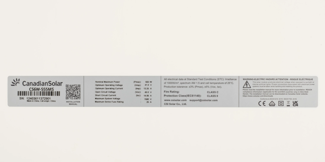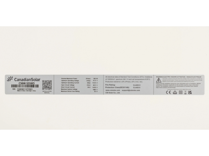Canadian Solar HiKu6 CS6W-555MS - це панель на основі монокристалічного кремнію для вироблення постійного струму із сонячної енергії. При виробництві використовуються тільки високоякісні та сертифіковані компоненти виробників зі світовим ім'ям та багаторічним досвідом роботи в галузі сонячної енергетики. Панель використовується для потужних сонячних електростанцій мережевого, гібридного, автономного типу, призначена для перетворення сонячного світла в електричний струм, який використовуватиметься для живлення електроприладів або продажу надлишків уздовж "зеленого тарифу".