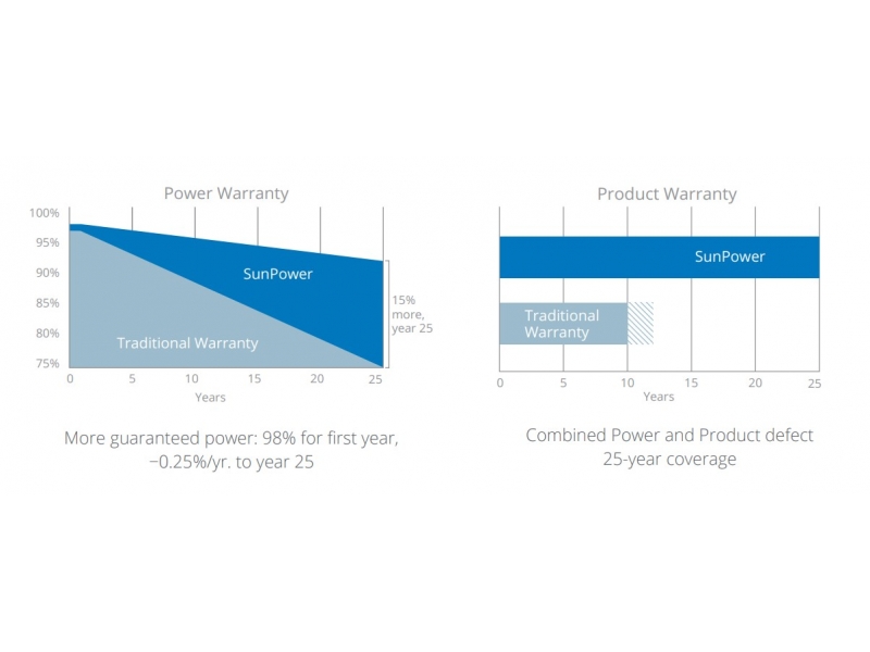 В основі кожної панелі лежить сонячний елемент Maxeon®, розроблений із твердою мідною основою, здатний витримувати суворі умови та забезпечувати десятиліття продуктивності. Це дозволило досягти деградації кремнію менше 0,4% на рік і забезпечило зниження потужності протягом 25-річного гарантійного терміну лише на 8%.
