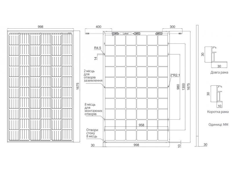 . Стандартний розмір (1675*998 мм). З лицьового та тильного боку покритий загартованим склом. Відмінно підходить для монтажу наземних сонячних установок.