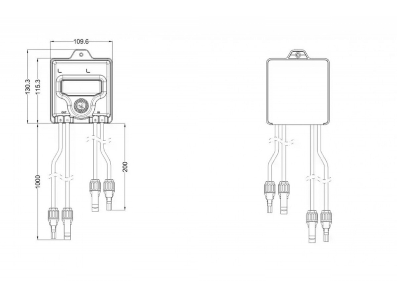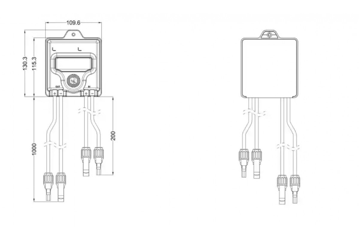 . Встановлюється по виходу сонячної панелі у розрив ланцюга позитивного та негативного полюсів панелі. А вихід оптимізатора до загального ланцюга поля.