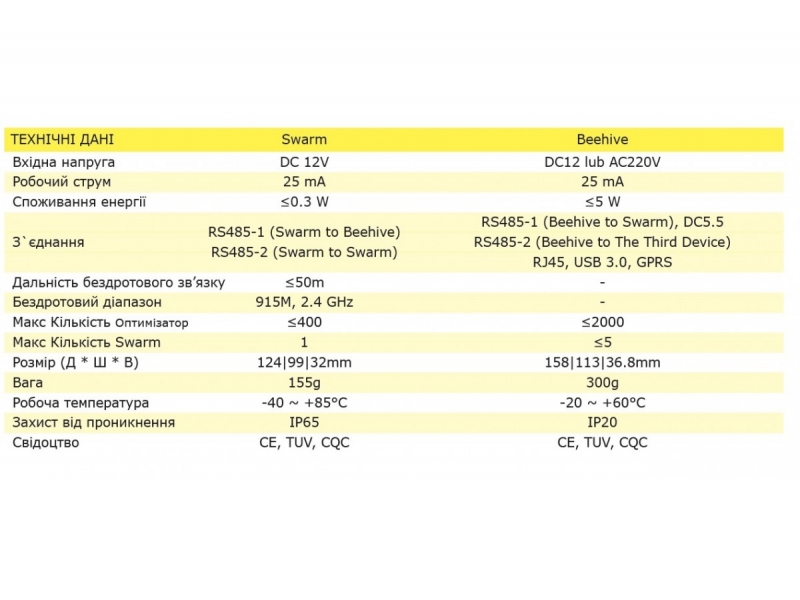 | Порти підключення | RS485-1 (від вулика до рою)、DC5.5 |
