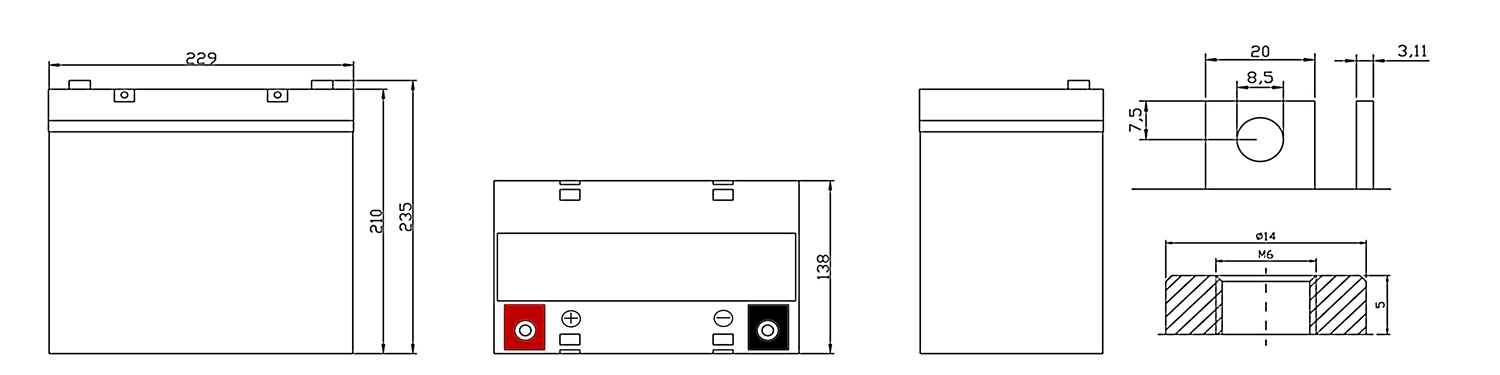 | Номінальна ємність, Aч | 48. При 10-годинному розряді до напруги 1.80 на комірку і 25°C.52 ~ 55 після 50 циклів. |