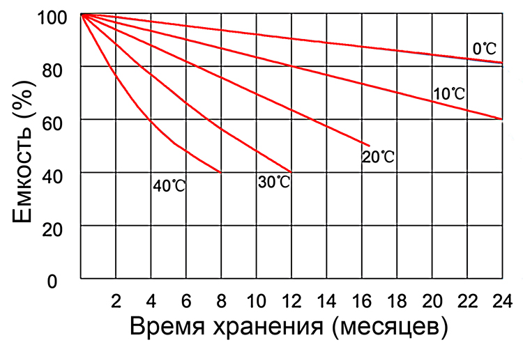 Зберігати краще в сухому та прохолодному місці. Оптимальна температура зберігання 25°С та нижче. Перезаряджайте акумулятор раз на півроку (при температурі 25°С±5°С). При підвищених температурах (понад 30 ° С) заряд необхідно проводити частіше - раз на 3 місяці.